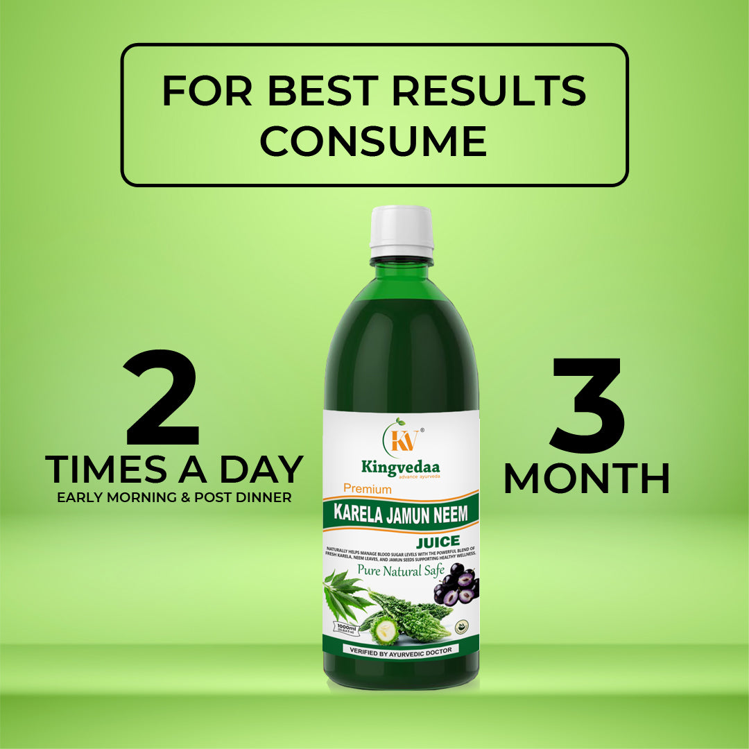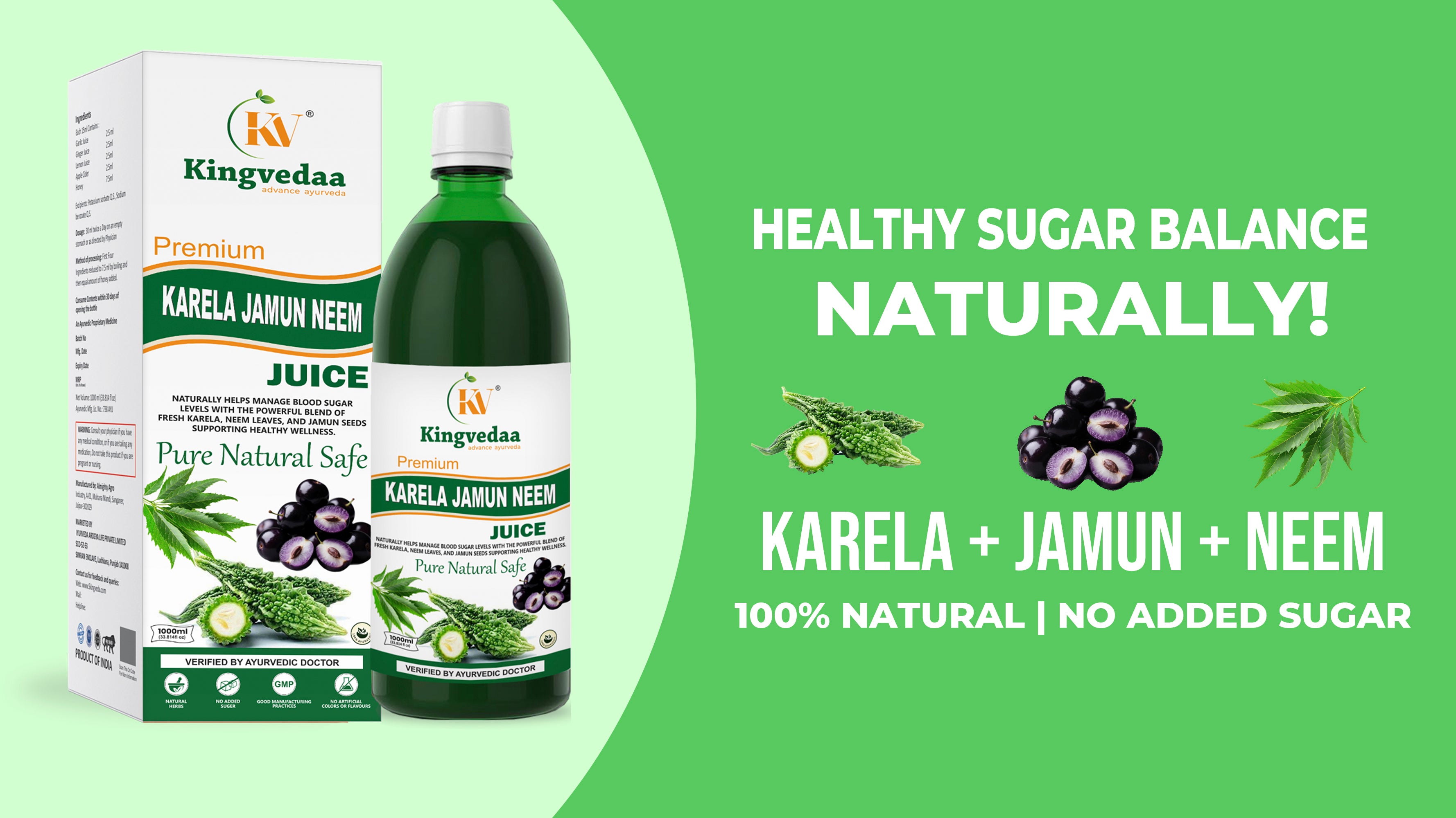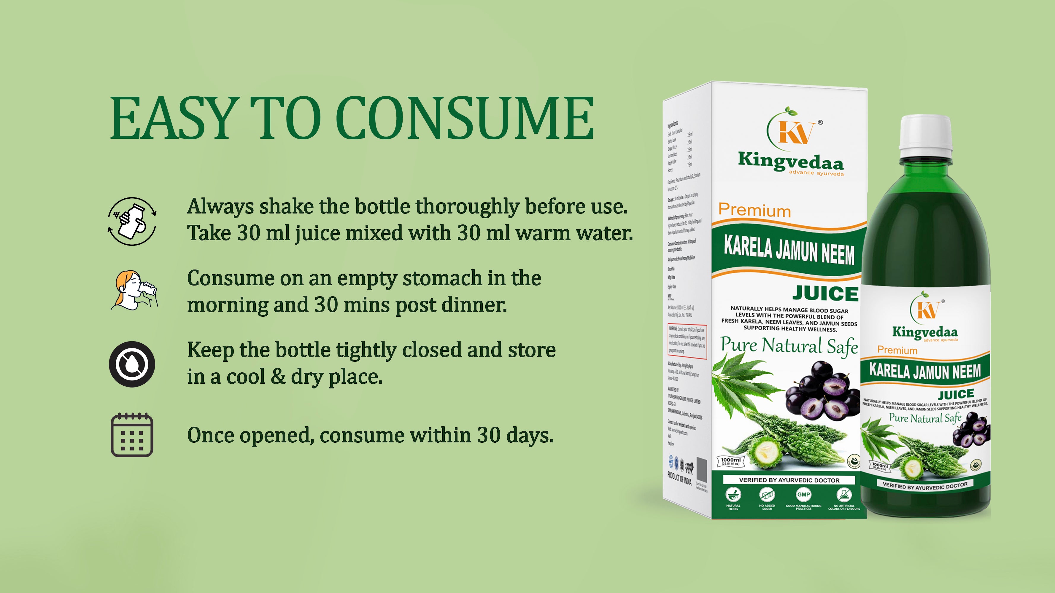 This juice combines the traditional Ayurvedic goodness of Karela, Jamun, and Neemโthree of the most trusted herbs for sugar management. Karela helps improve insulin activity, Jamun supports glucose control and digestion, while Neem purifies the blood and enhances metabolic health.